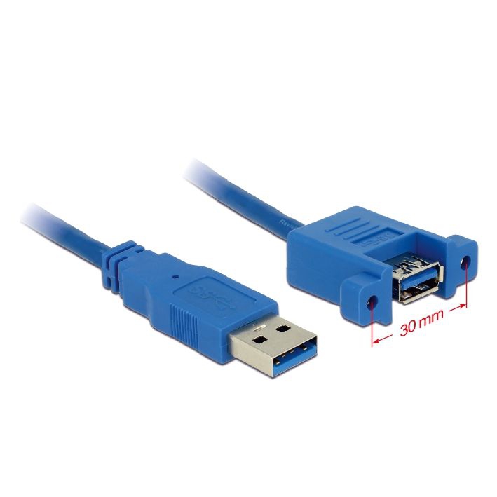 Produktinformationen "USB 3.0 Montagekabel A-Buchse anschraubbar an A-Stecker 1m Schraubenabstand 30mm BLAU"
