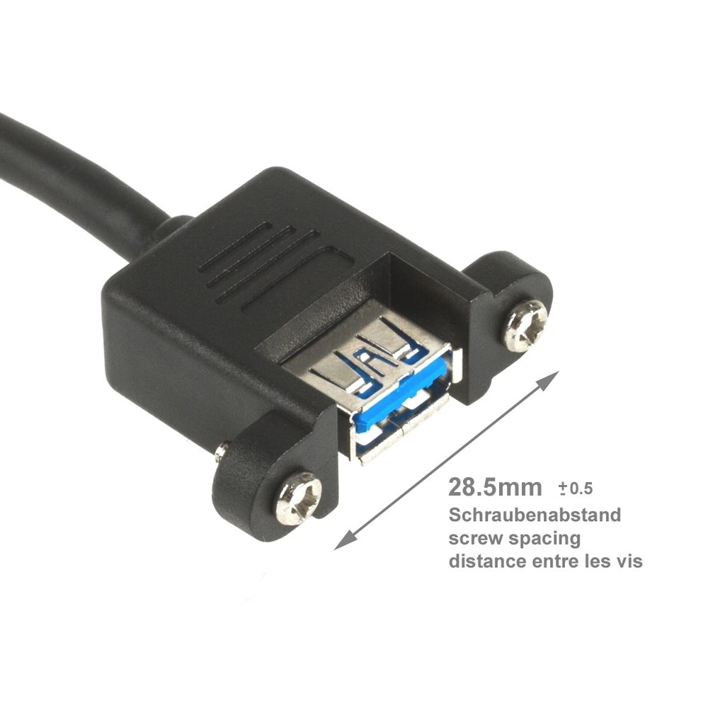 USB 3.0 Montagekabel 1.8m: USB-A-Buchse (anschraubbar) an USB-A-Stecker, USB 3.0 Super-Speed-Modus, doppelt abgeschirmt, inkl. Schrauben, Schraubenabstand 28.5mm