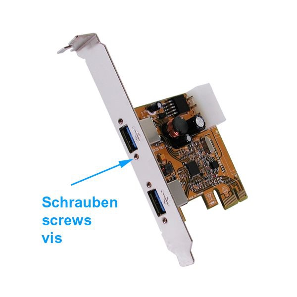 Diese PCI-Express-Karte erweitert Ihren Rechner um zwei externe USB 3.0 Ports. Sie können an die Karte verschiedene USB3-Geräte anschließen, wie z.B. schnelle Festplatten, Card Reader (Karten-Lesegeräte), Speichersticks, Digitalkameras oder Scanner.