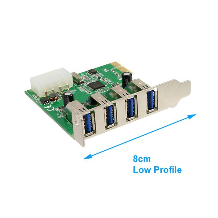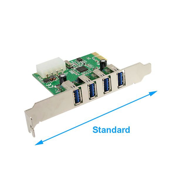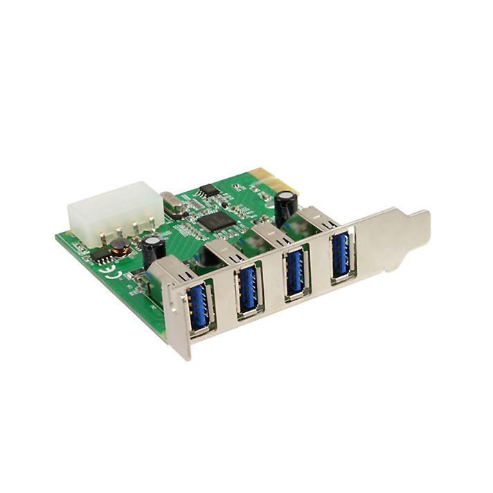 Diese PCI-Express-Karte erweitert Ihren Rechner um vier externe USB 3.0 Ports. Sie können an die Erweiterungskarte verschiedene USB3-Geräte anschließen, wie z.B. schnelle HDDs, CardReader (Kartenleser), Speichersticks, Digitalkameras oder Scanner.