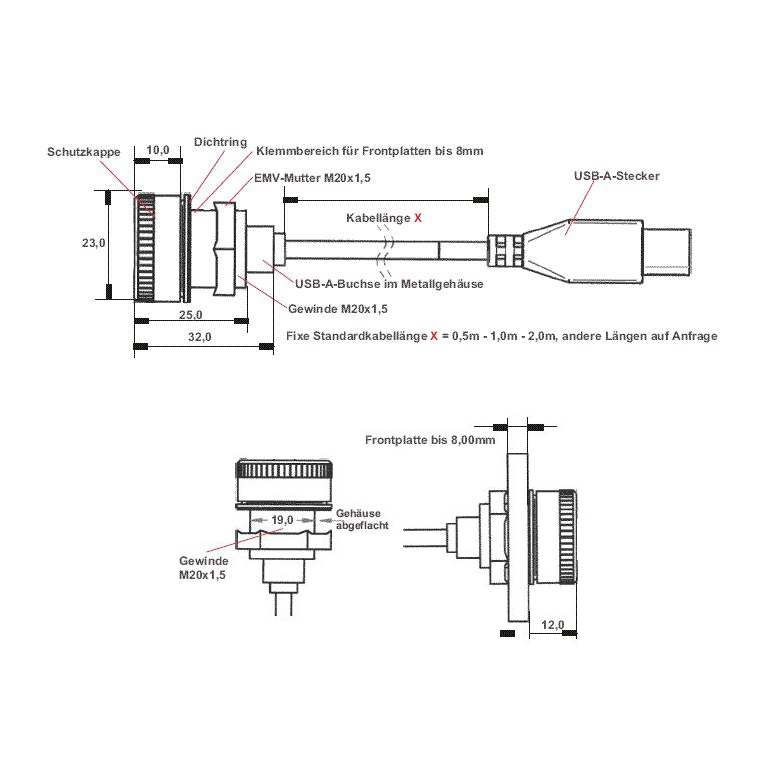Produktinformationen "USB 3.0 Panel Montagekabel AA mit Kappe (IP67), Kappen-Halteseil innen, 1m"