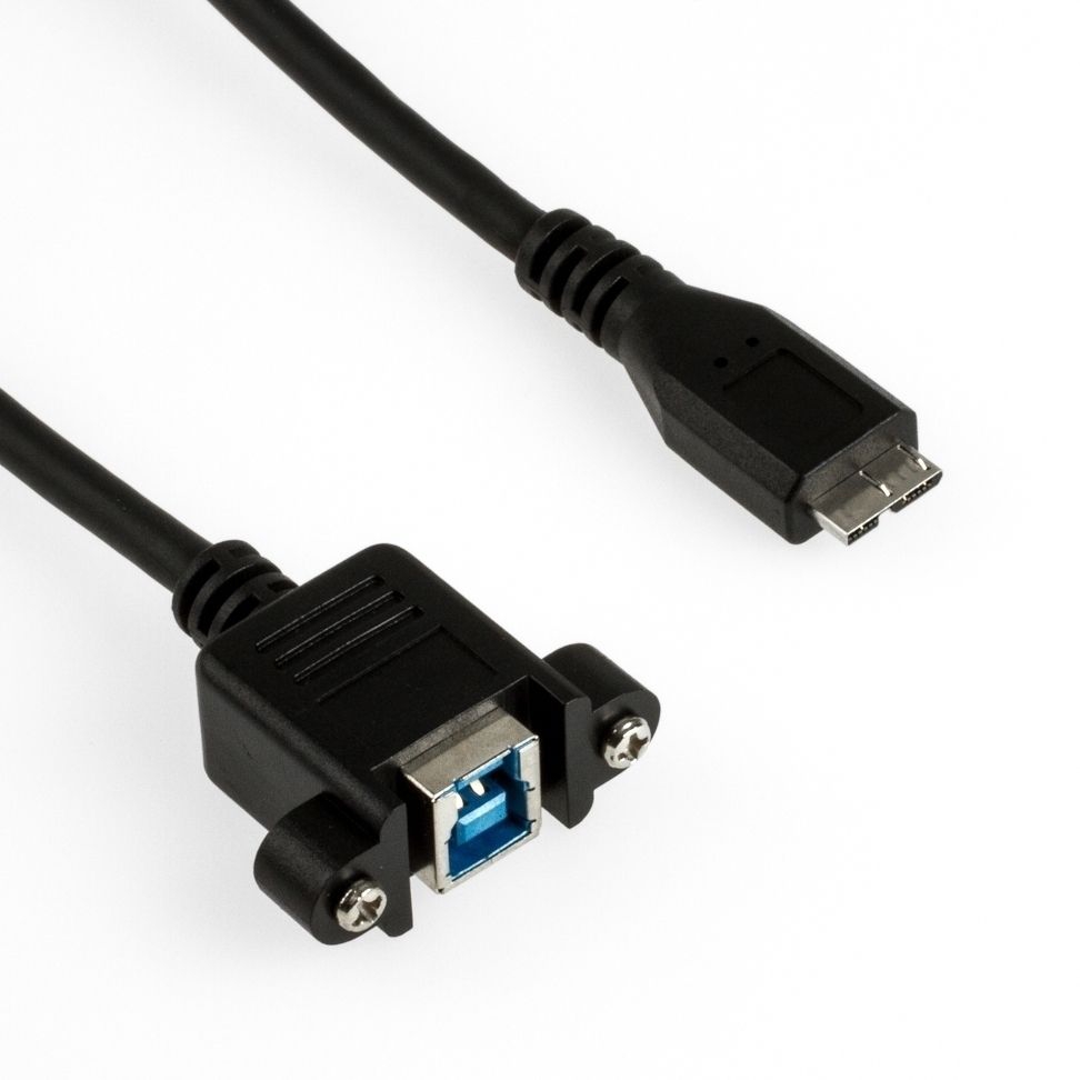 USB 3.0 Panel-Montagekabel B-Buchse anschraubbar an Micro-B-Stecker 3m