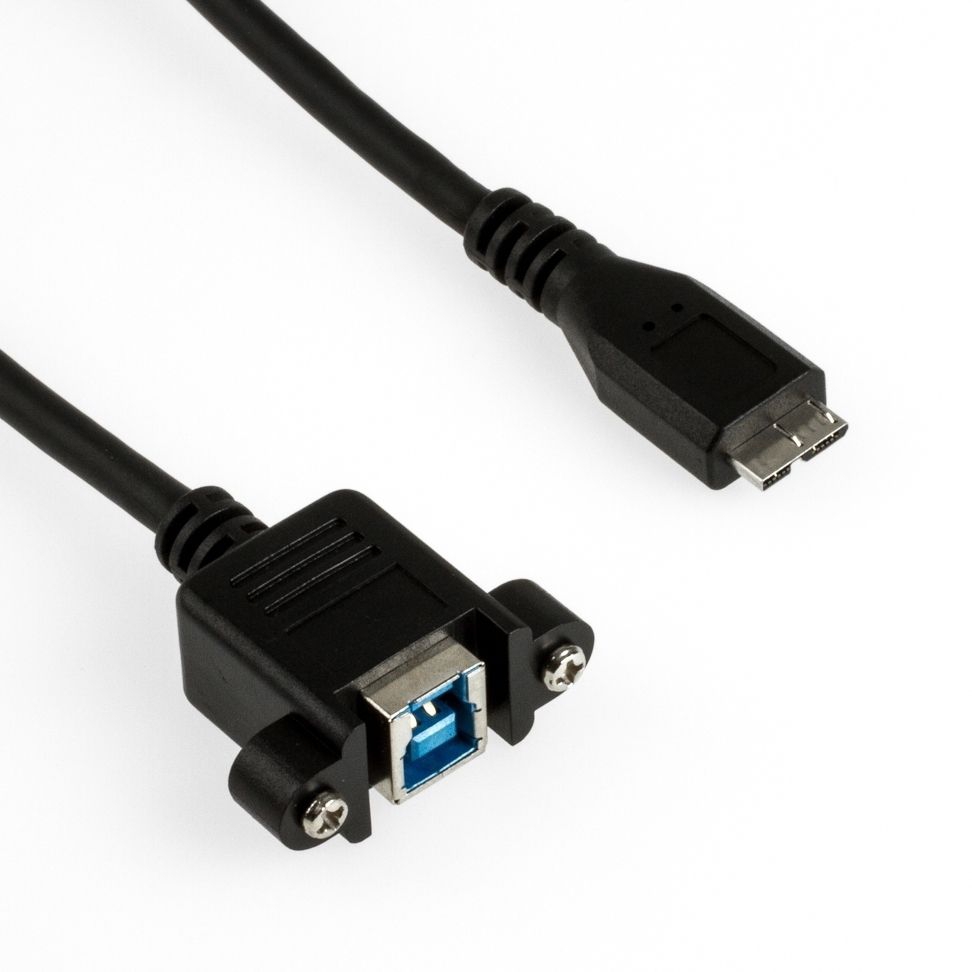 USB 3.0 Panel-Montagekabel B-Buchse anschraubbar an Micro-B-Stecker 40cm