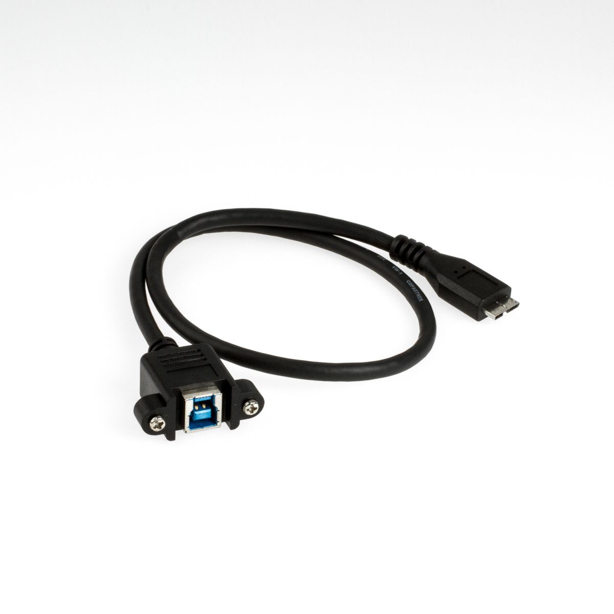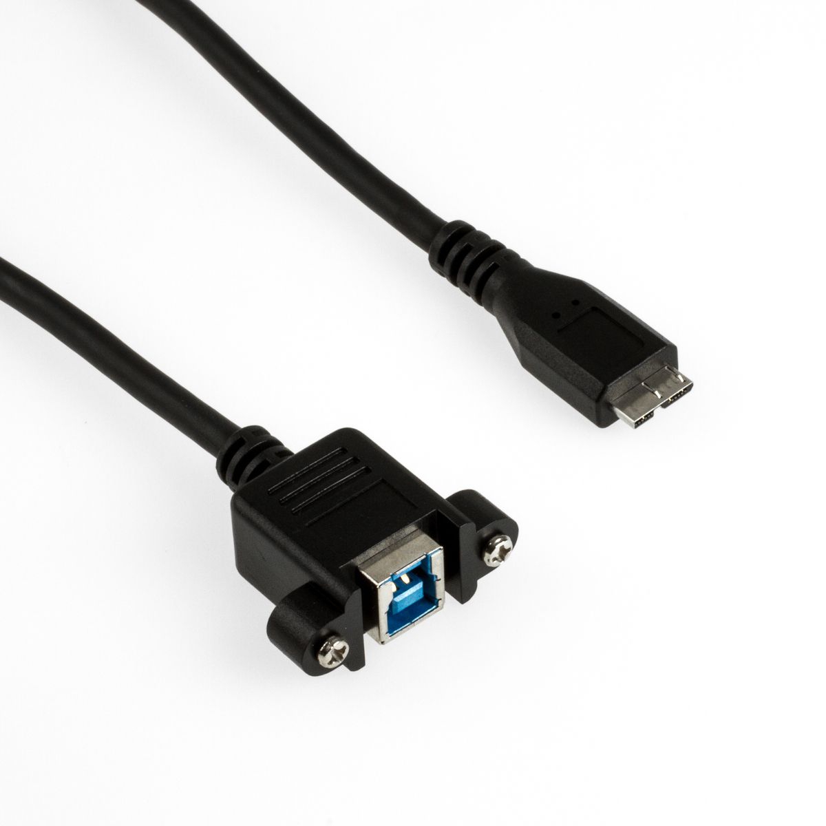 USB 3.0 Panel-Montagekabel B-Buchse anschraubbar an Micro-B-Stecker 50cm