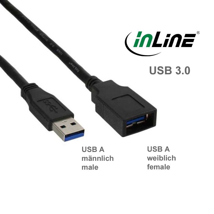 - Stecker USB 3.0 Typ A (männlich) auf Buchse USB 3.0 Typ A (weiblich)