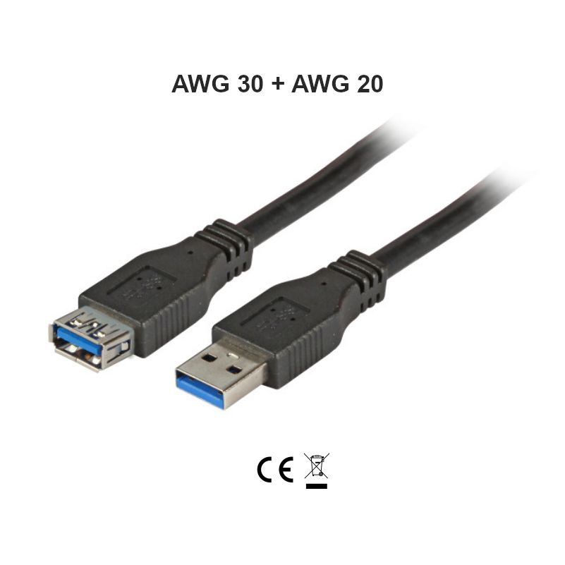 USB 3.0 Verlängerung AWG20 AWG30 A-Stecker an A-Buchse 180cm