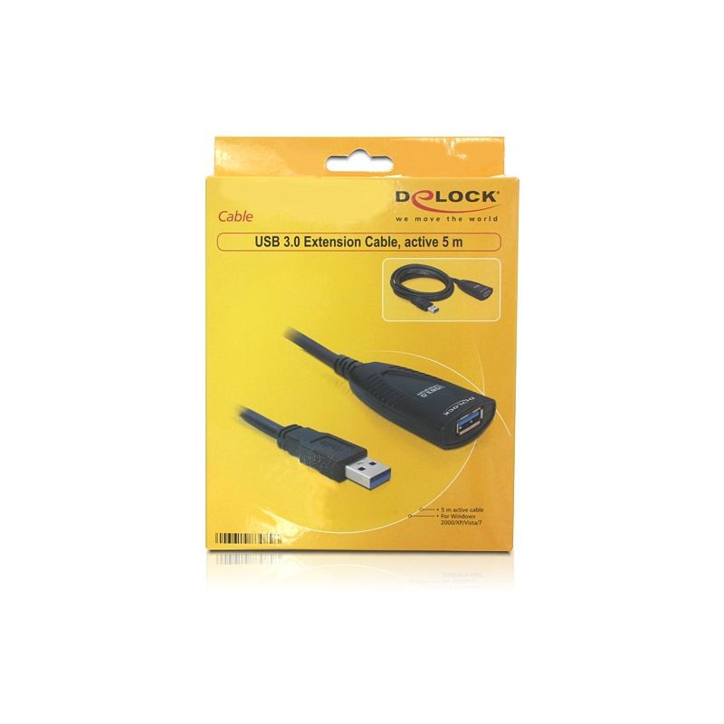 USB 3.0 Verlängerung, 5m, aktiv mit integriertem Signalverstärker (Booster), mit 5V DC Anschluss für optionales Netzteil