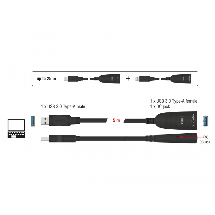 Dieses USB 3.0 Kabel dient zur aktiven Verlängerung Ihres USB 3.0 Ports um 5 Meter. In die A-Buchse des Verlängerungskabel ist eine Signal-Verstärkerelektronik (sog. Booster) integriert.