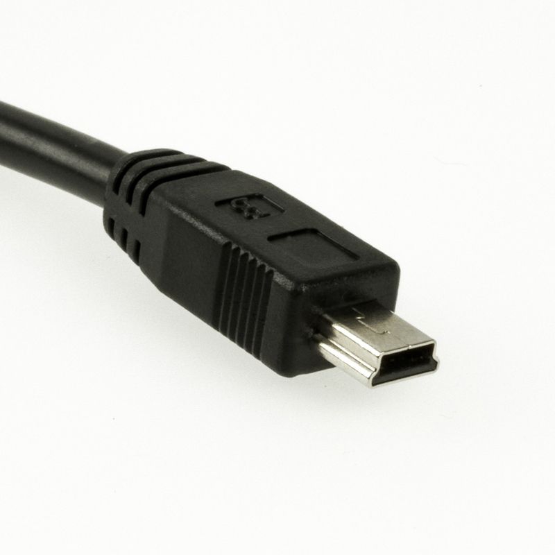 - B-Buchse (weiblich) auf Mini-B-Stecker (männlich, 5-polig, trapezförmig)
