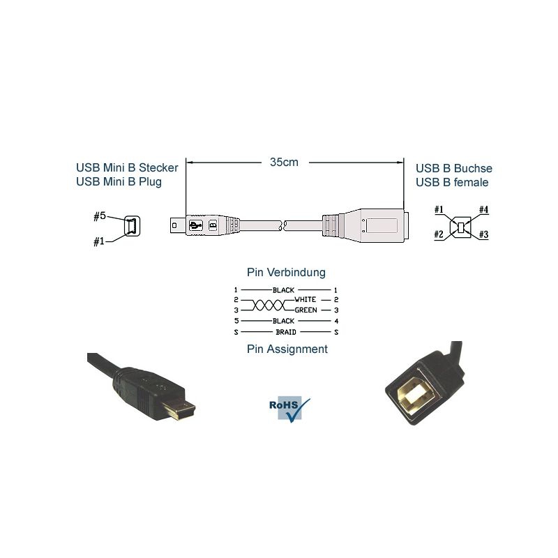 Produktinformationen "USB-Adapterkabel mit B-Buchse auf Mini-B-Stecker 35cm"