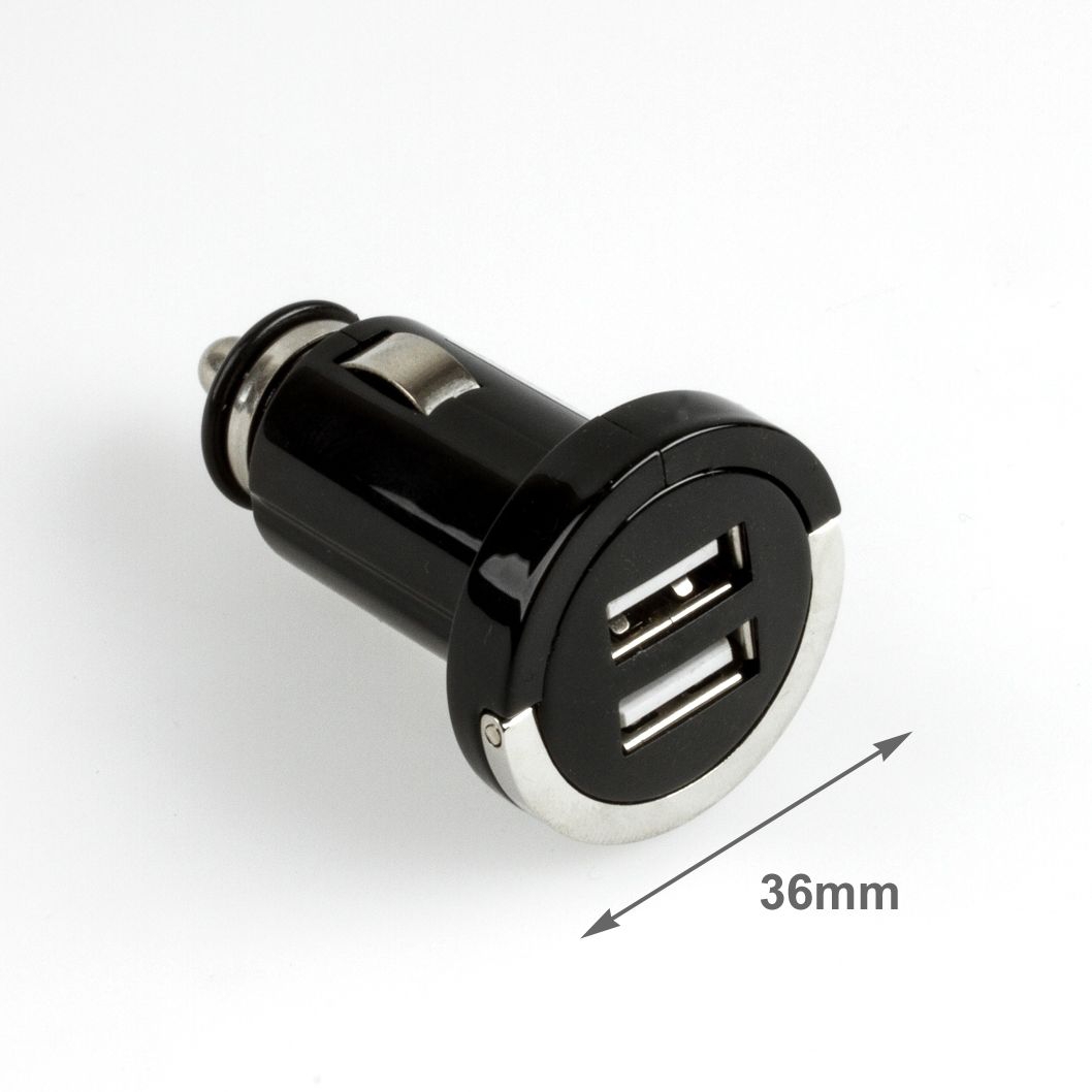 USB-DOPPEL-Ladeadapter für PKW, LKW, Boot u.a., Zigarettenanzünder an 2x USB-A-Buchse, IN: 12-24V, OUT: 2x 5V max. 2100mA, extra kleine Bauform