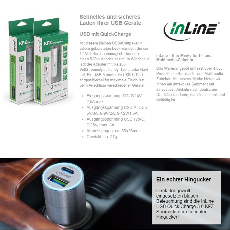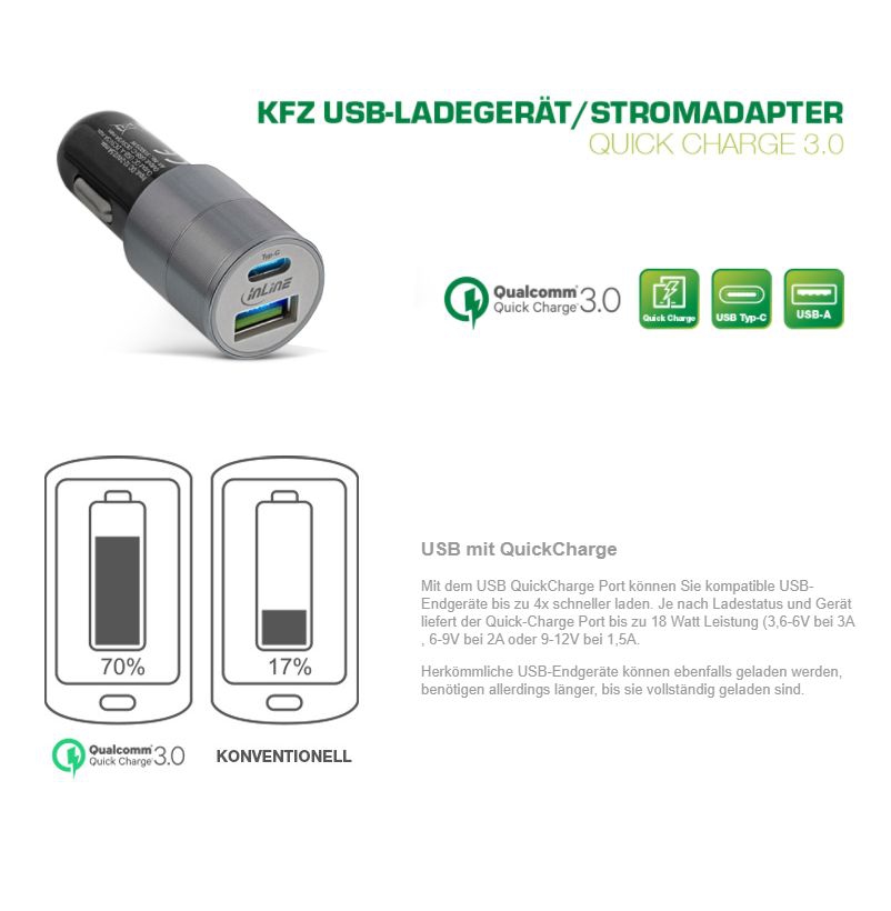 Produktinformationen "USB KFZ Stromadapter Quick Charge mit USB A und USB Typ-C"