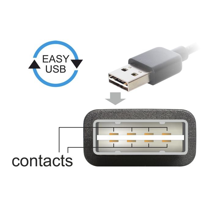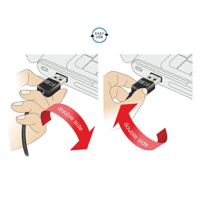 - Stecker 1: USB 2.0 Typ A männlich (beidseitig einsteckbar)