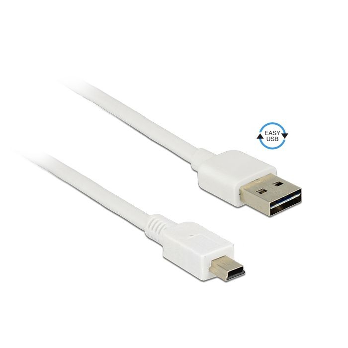 Mini-USB-Kabel 2m, USB 2.0 A (drehbar) an USB 2.0 Mini B, PREMIUM-Qualität, UL-Kabelmaterial, AWG24/28, USB 2.0 kompatibel, Farbe: weiss