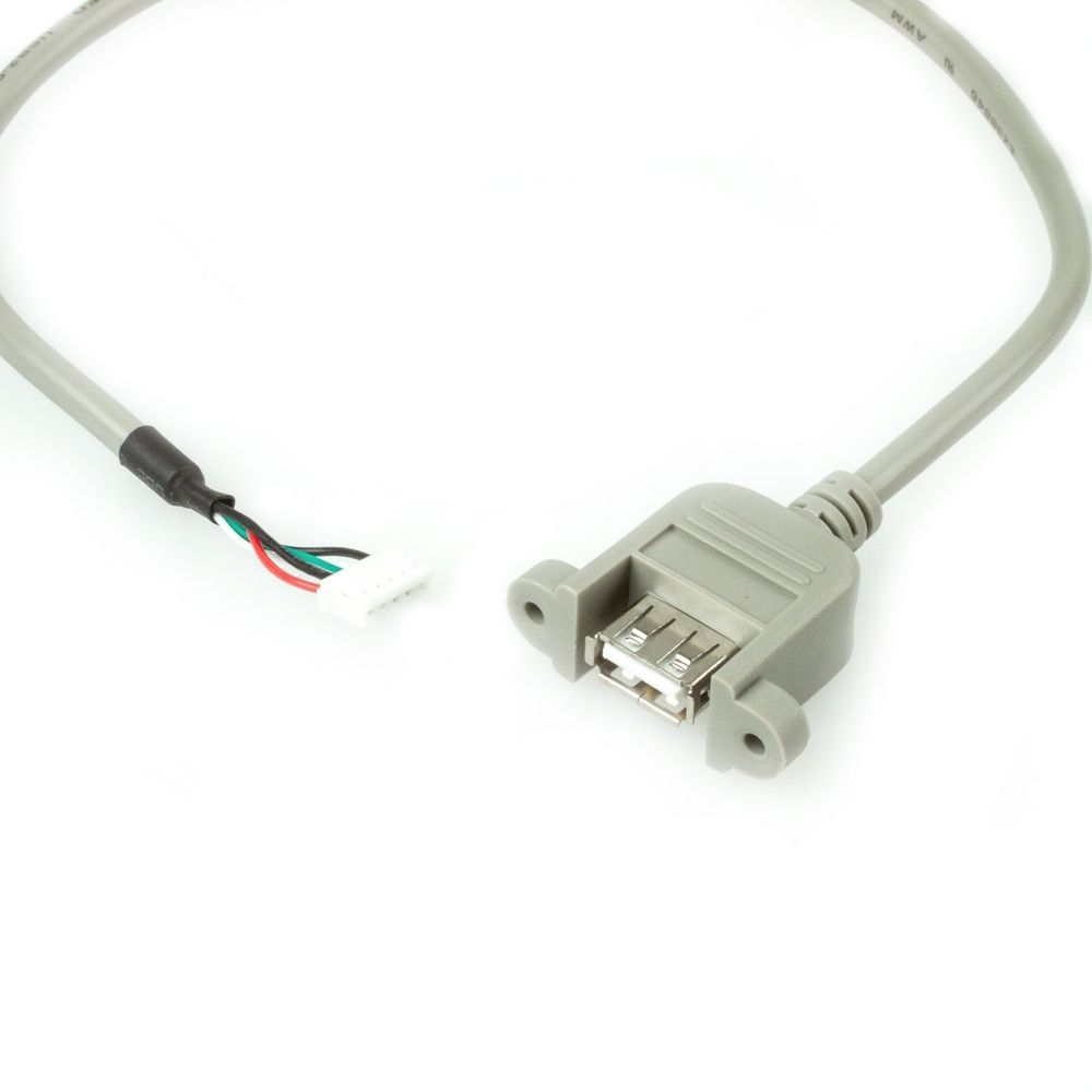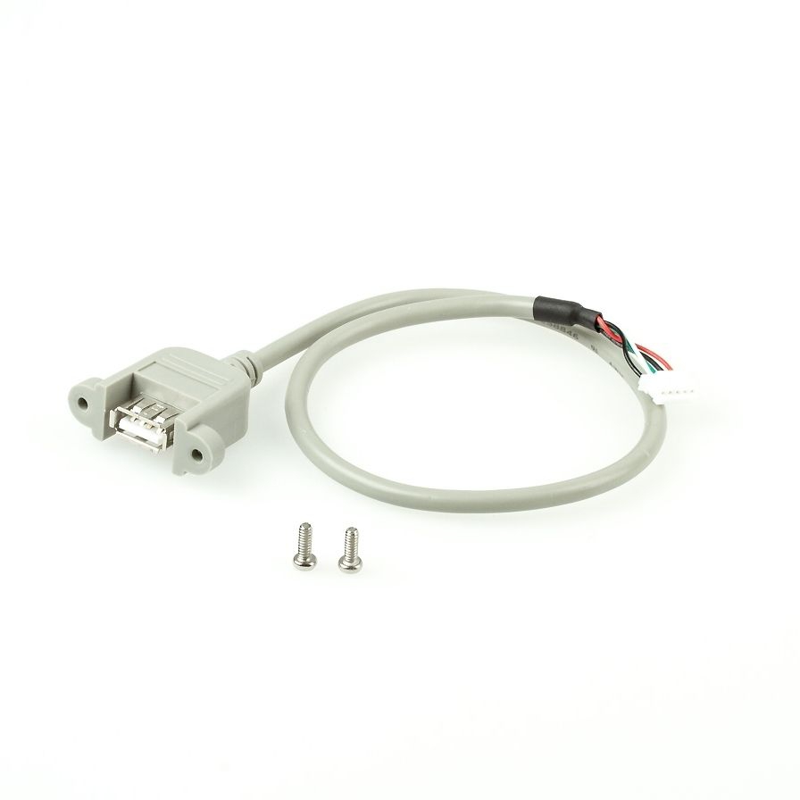 USB-Montagekabel: USB-A-Buchse (anschraubbar) an Boardstecker JST PHR 5, ca. 35cm-Kabel, inkl. Schrauben
