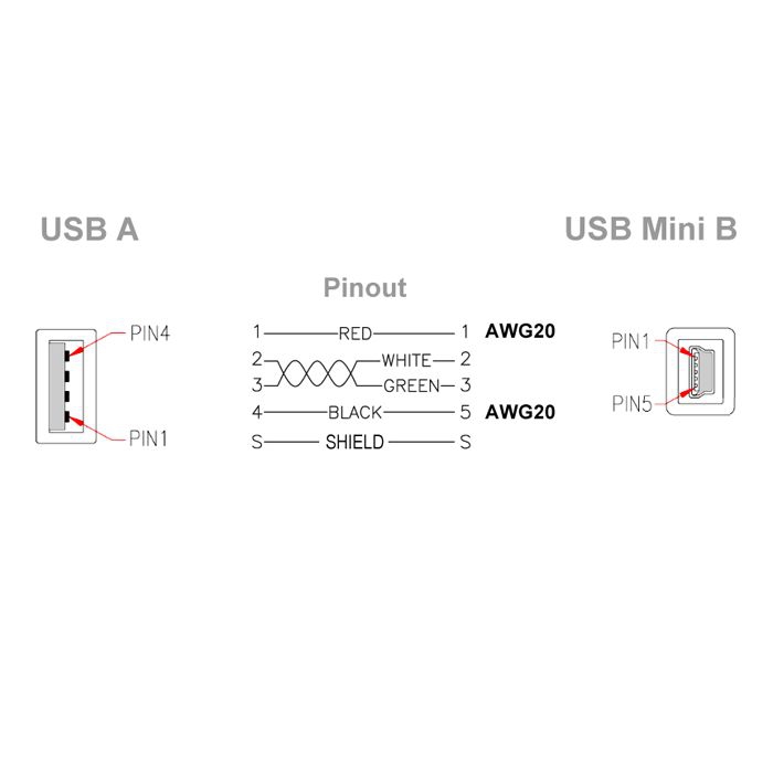 - Kabelaufdruck: HI-SPEED USB Revision 2.0 SHIELDED 28AWG/1P 20AWG/2C VW-1 80°C 30V