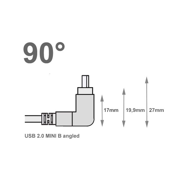 Das hier angebotene spezielle USB 2.0 Kabel hat einen um 90° abgewinkelten Mini-Stecker Typ B. Dadurch eignet sich das Winkelkabel insbesondere für den platzsparenden Anschluss von USB-Geräten.