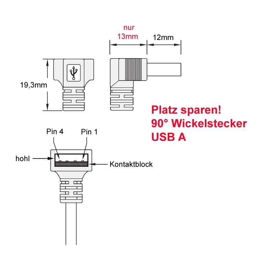 - BESONDERHEIT: sehr platzsparender USB A-Winkelstecker 90°