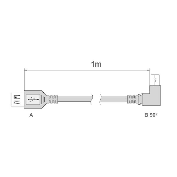 Das hier angebotene USB-Kabel hat einen um 90° abgewinkelten USB-Stecker Typ B. Dadurch eignet sich das Kabel besonders für den platzsparenden Anschluss von USB-Geräten.