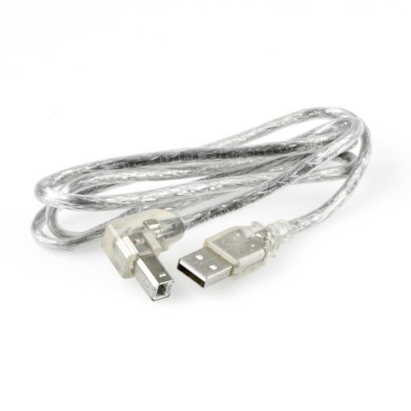 USB-Kabel mit abgewinkeltem B-Stecker (nach unten), 1m, für USB 1.1 + USB 2.0, Premium-Qualität, Farbe: silber-transparent