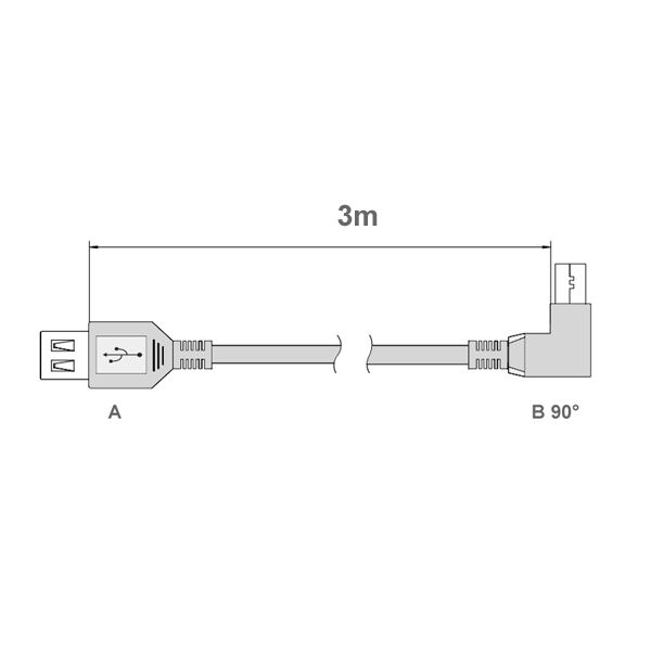 Das hier angebotene USB-Kabel hat einen um 90° abgewinkelten USB-Stecker Typ B. Dadurch eignet sich das Kabel besonders für den platzsparenden Anschluss von USB-Geräten.