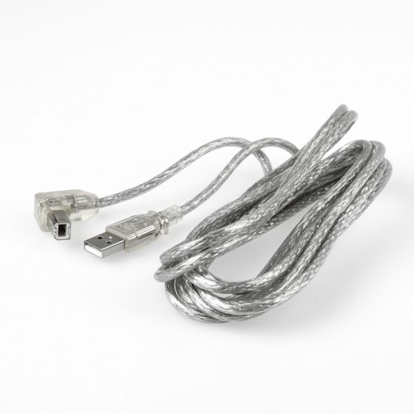 USB-Kabel mit abgewinkeltem B-Stecker (nach unten), 3m, für USB 1.1 + USB 2.0, Premium-Qualität, Farbe: silber-transparent