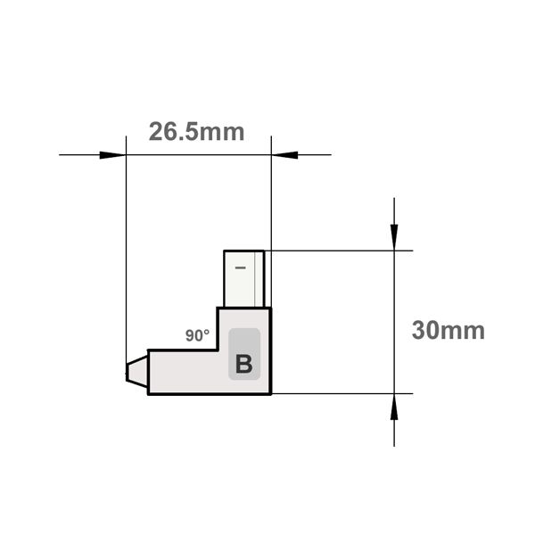 Wir bezeichnen das Kabel als 90° NACH UNTEN abgewinkelt. Bitte prüfen Sie die Ausrichtung der USB-B-Buchse Ihres USB-Gerätes. Sie müssen die Position der 2 abgerundeten Ecken der USB-B-Buchse beachten. Möglicherweise ist das was wir als 'nach unten' bezeichen bei Ihnen nach oben, rechts oder links.