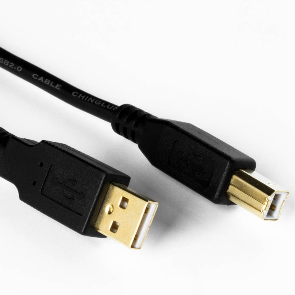 USB-Kabel AB PREMIUM-Qualität, vergoldete Stecker, schwarz, 2m