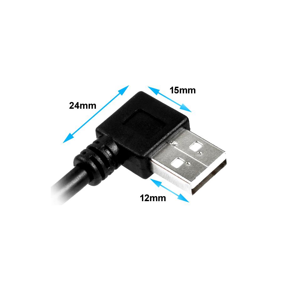Das hier angebotene USB 2.0 Kabel hat einen um 90° abgewinkelten USB-Stecker Typ A. Dadurch eignet sich das Kabel besonders für den platzsparenden Anschluss am PC oder Notebook. Der Stecker-Überstand beträgt nur ca. 15mm. Hierfür haben wir extra ein spezielles Tooling anfertigen lassen.