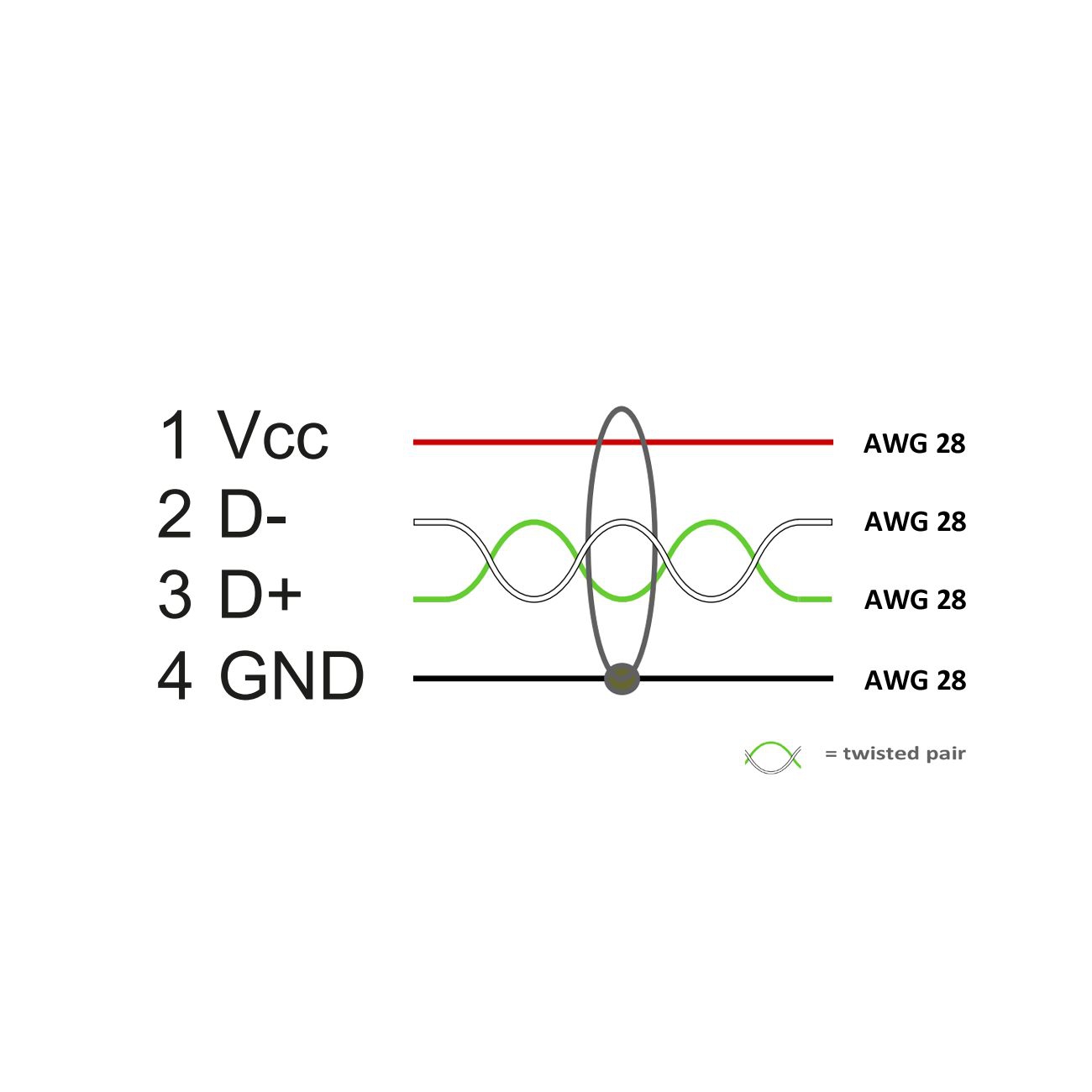 - Leiterdurchmesser: AWG28 (7/0.12BCx1P) + 28AWG (7/01BCx2C)