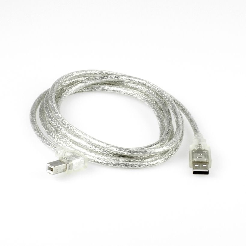 USB-Kabel Stecker B abgewinkelt LINKS 2m silber-transparent