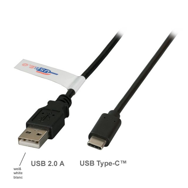 USB-Kabel Type-C™ Stecker auf USB 2.0 A Stecker 50cm, Adernstärken: AWG 28/1P AWG 22/2C, zertifiziertes Kabel (TID 200000215), schwarz