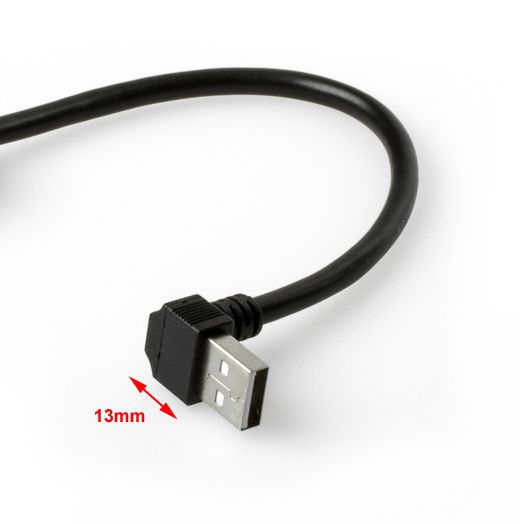 Das hier angebotene USB-Kabel hat einen um 90° abgewinkelten USB-Stecker Typ A. Dadurch eignet sich das Kabel besonders für den platzsparenden Anschluss. Der Stecker-Überstand beträgt nur ca. 13mm. Um diesen geringen Überstand zu realisieren, haben wir extra ein spezielles Tooling gefertigt.