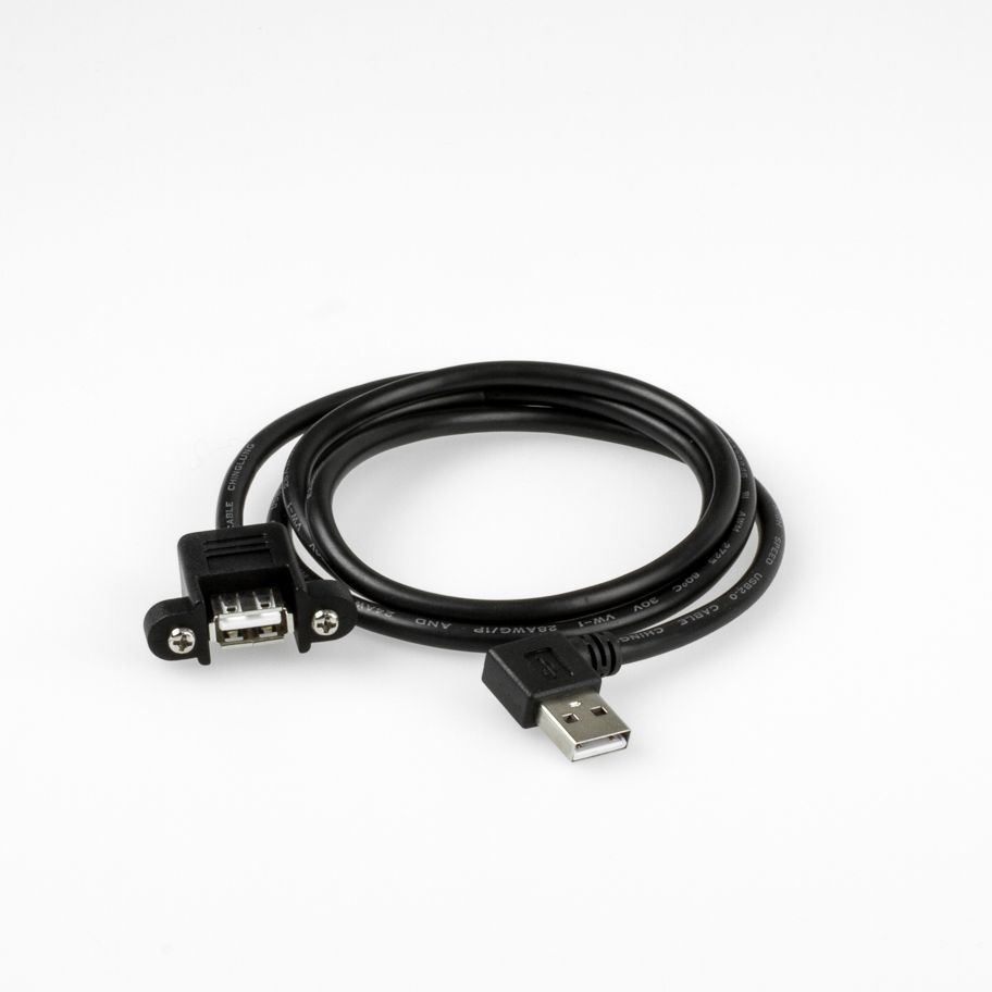 USB-Montagekabel 1m: USB-A-Buchse (anschraubbar) an USB-A-Stecker (LINKS abgewinkelt), für USB 2.0 und USB 1.1 (bis 480 MBit/s), doppelt abgeschirmt, inkl. Schrauben