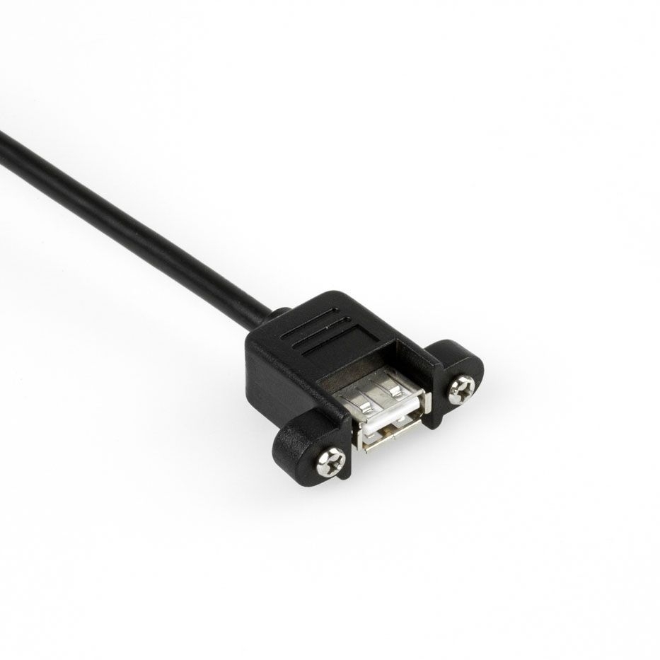 Die Buchse des Montagekabels (Typ A weiblich) ist anschraubbar. Der Schraubenabstand beträgt 26mm. Der Schraubentyp ist UNC 4/40. Durch den Einsatz von Montagekabeln wird quasi eine USB-Steckdose realisiert.