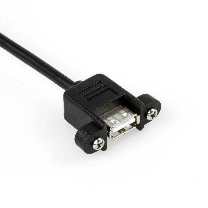 Die Buchse des Montagekabels (Typ A weiblich) ist anschraubbar. Der Schraubenabstand beträgt 26mm. Der Schraubentyp ist UNC 4/40. Durch den Einsatz von Montagekabeln wird quasi eine USB-Steckdose realisiert.