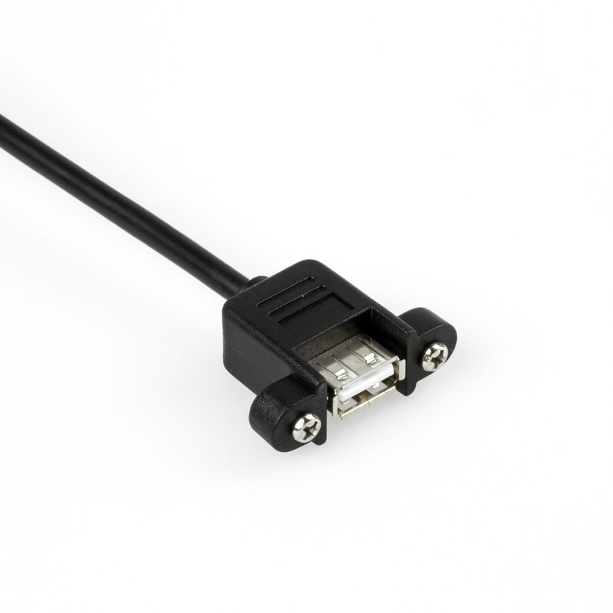 Die Buchse des Montagekabels (Typ A weiblich) ist anschraubbar. Der Schraubenabstand beträgt 26mm. Der Schraubentyp ist UNC 4/40. Durch den Einsatz von Montagekabeln wird quasi eine USB-Steckdose realisiert.