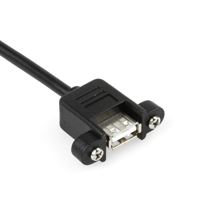 Die Buchse des USB 2.0 Panel-Montagekabels (Typ A weiblich) ist anschraubbar. Die Muttern sind seitlich eingegossen. Als Schraubentyp wird UNC 4/40 verwendet, der im Computerbereich meistverwendete Gewindetyp. Der Schraubenabstand beträgt 26mm. Mit diesem Schraubenabstand sind bei partsdata zahlreiche andere USB-Montagekabel verfügbar.
