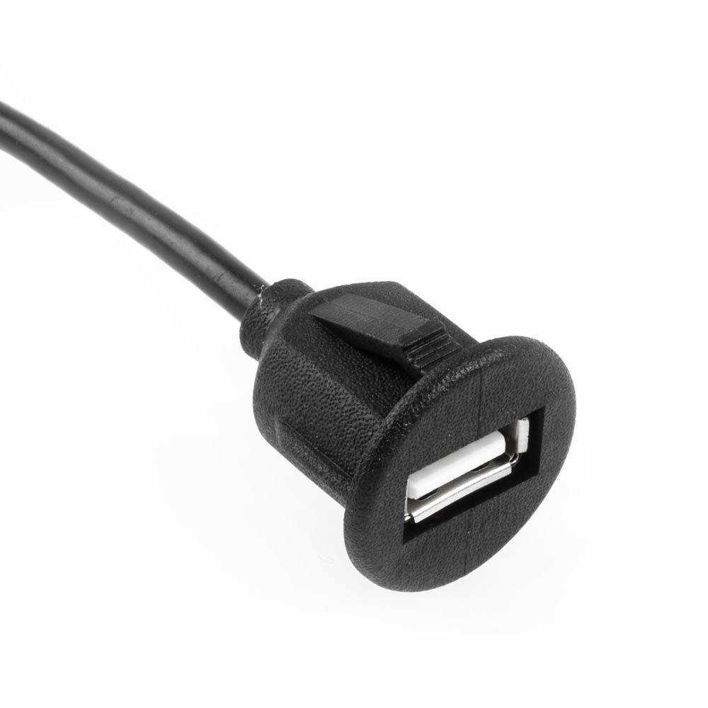 USB-Montagekabel für runde Gehäuse-Aussparung mit 2cm Durchmesser, 120cm, USB 2.0, max. 480 MBit/s, USB-A-Stecker an USB-A-Buchse, Farbe: Schwarz