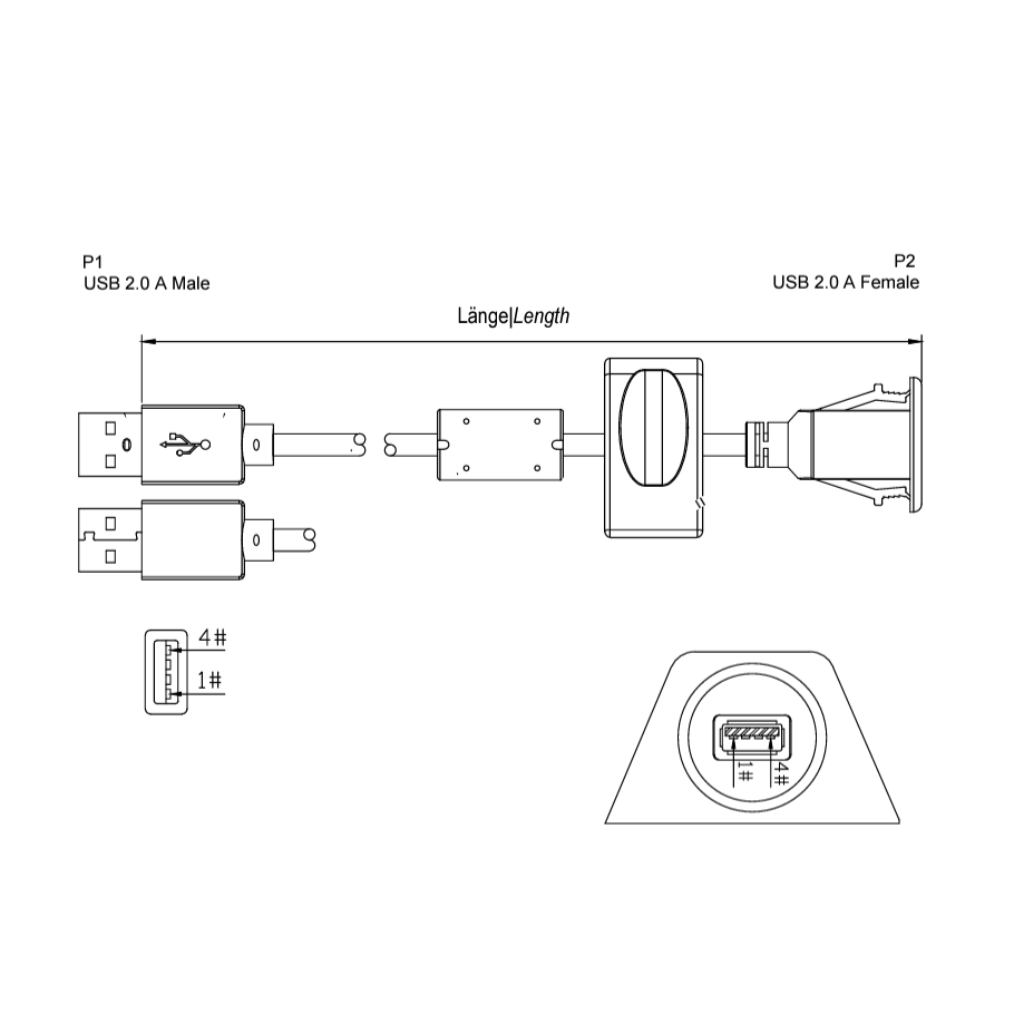 - USB 2.0 A Buchse (weiblich) an USB 2.0 A Stecker (männlich)