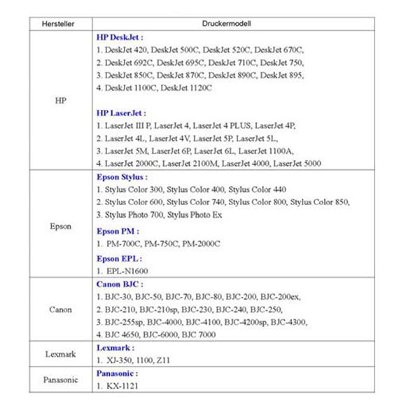 - HP LaserJet 5L (Druckertreiber in Windows 7 integriert)