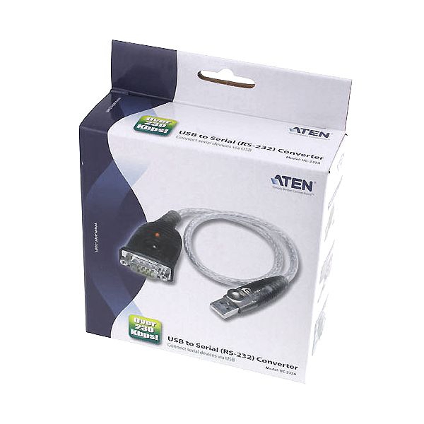 Das Produkt ATEN UC232A ist ein Konverter von USB- auf serielle Schnittstelle. Es stellt PCs, Notebooks und Handheld-Geraten mit USB-Port eine externe RS-232-Schnittstelle mit PnP zur Verfugung. Das ATEN-Adapterkabel ist weltweit das kompatibelste Produkt, welches uns bekannt ist. Die Treiber werden von ATEN regelmäßig aktualisiert und stehen per Download über www.aten.com (externer Link) zur Verfügung (ATEN Artikelnummer UC232A).
