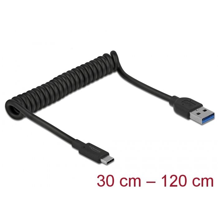 USB-Spiralkabel Type-C™ Stecker auf A-Stecker, USB 3.1 Gen. 2, 10 Gbps, 30-120cm