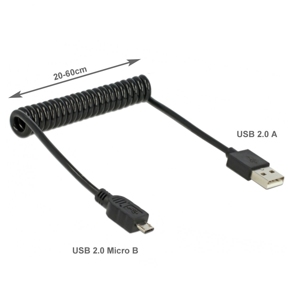 USB-Spiralkabel USB A an MICRO B 30cm bis 60cm