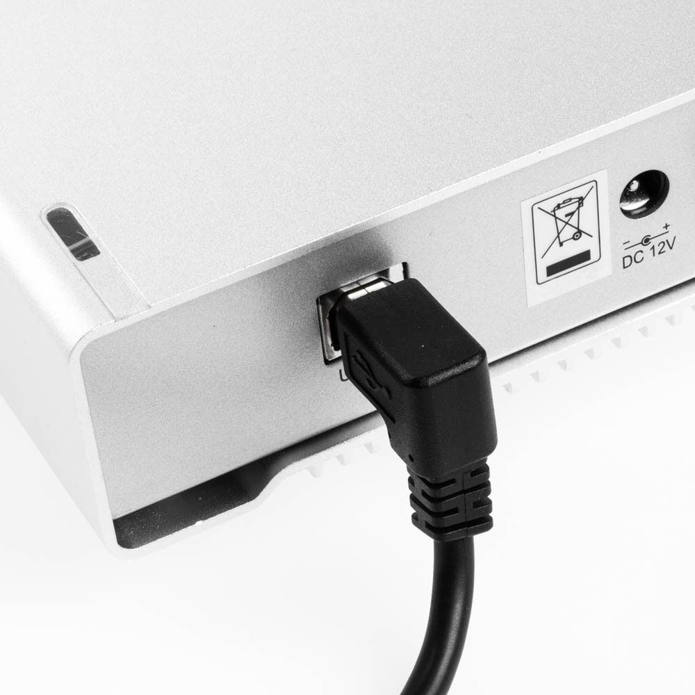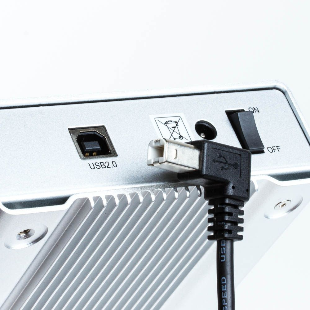 Die hier angebotene USB-Verlängerung hat einen um 90° abgewinkelten USB-Stecker Typ B. Dadurch eignet sich das Kabel besonders für den platzsparenden Anschluss. Es ist als Winkelversion in den Längen 30cm, 50cm, 1m und 2m im Programm. Sonderlängen können ab einer Mindestmenge von 500 Stk. herstellt werden.
