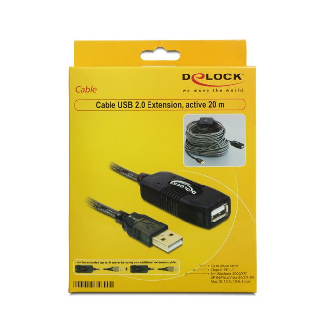 Diese USB-Extention können Sie an den USB-2.0-Port Ihres Rechners anschließen und den Anschluss um 20 Meter verlängern. Eine aktive USB-Verlängerung wird auch als USB-Repeater-Kabel oder Booster-Kabel bezeichnet.