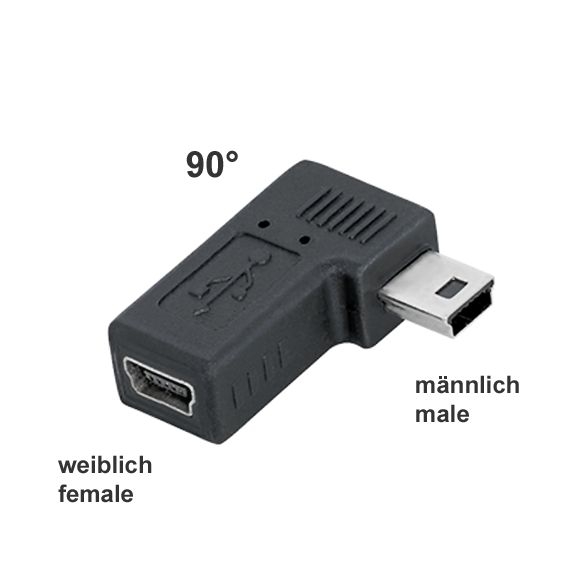 USB-Winkeladapter Mini-B 90° NACH LINKS 5-polig