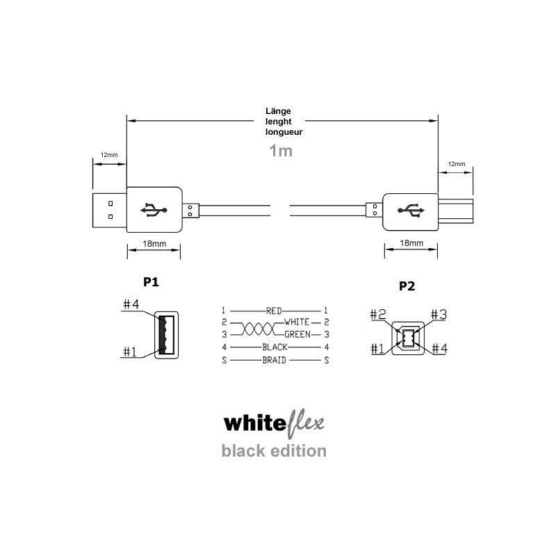 - Whiteflex USB 2.0 Kabel, Black Edition