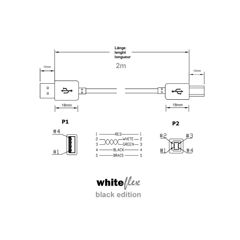- Whiteflex USB 2.0 Kabel, Black Edition