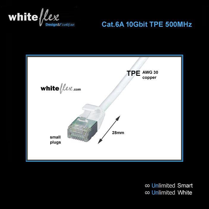 WHITEFLEX Cat.6A Patchkabel TPE weiss + flexibel 3m